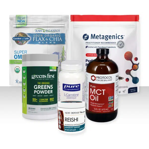 In addition to the basics we have added Carnitine for supporting energy production and muscle, MCT oil for extra energy, Reishi Mushroom for enhancing super immunity and longevity.